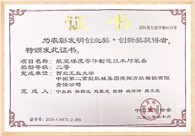 (通訊員 周文武 王婭莉)近日,萬(wàn)航模鍛聯(lián)合西北工業(yè)大學(xué)聯(lián)合申報(bào)的《航空梯度零件制造技術(shù)與裝備》項(xiàng)目榮獲中國(guó)發(fā)明協(xié)會(huì)發(fā)明創(chuàng)業(yè)獎(jiǎng)·創(chuàng)新獎(jiǎng)二等獎(jiǎng)。