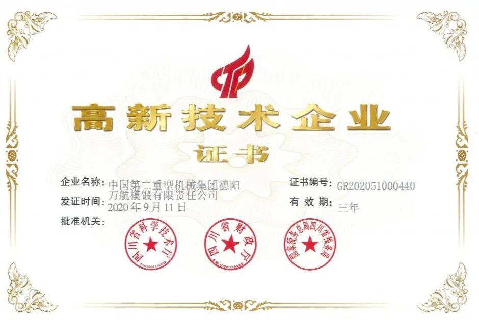 (通訊員 王婭莉)近日,經四川省高新技術企業(yè)認定管理機構認定,并報科學技術部火炬高技術產業(yè)開發(fā)中心批準,萬航模鍛被認定為2020年第一批高新技術企業(yè)。
