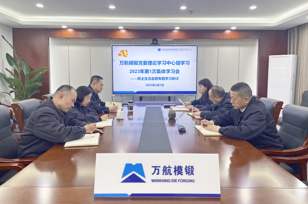 2月7日,萬航模鍛黨委書記、董事長向彪主持召開2023年黨委理論學習中心組第1次集體學習會,開展2022年度民主生活會會前集中學習研討。萬航模鍛黨委理論學習中心組成員參加會議。