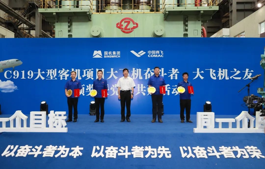 8月11日,C919大型客機(jī)項(xiàng)目“大飛機(jī)奮斗者”、“大飛機(jī)之友”頒獎(jiǎng)暨黨建共建活動(dòng)在國(guó)機(jī)集團(tuán)下屬企業(yè)中國(guó)第二重型機(jī)械集團(tuán)有限公司(以下簡(jiǎn)稱“中國(guó)二重”)8萬(wàn)噸模鍛壓力機(jī)生產(chǎn)現(xiàn)場(chǎng)舉行。國(guó)機(jī)集團(tuán)4名個(gè)人、1個(gè)團(tuán)隊(duì)榮獲C919“大飛機(jī)奮斗者”和“大飛機(jī)之友”殊榮。