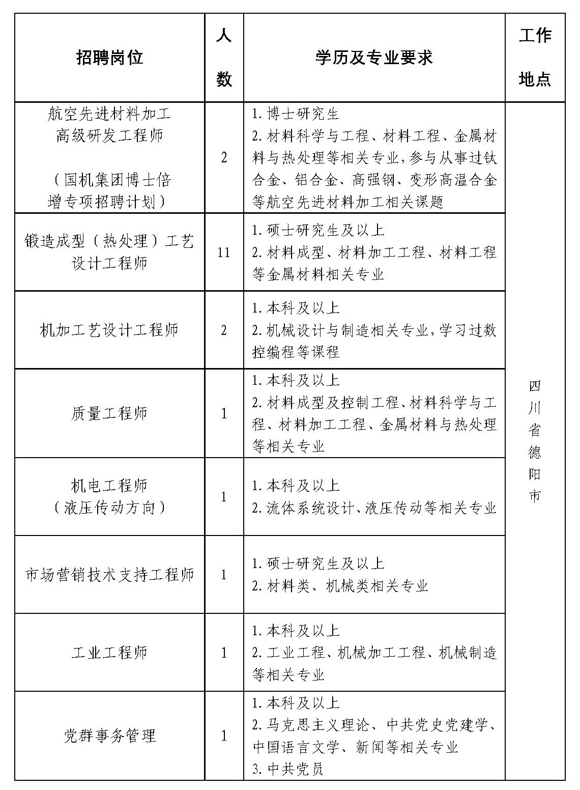 中國第二重型機械集團德陽萬航模鍛有限責(zé)任公司2023冬季招聘公告