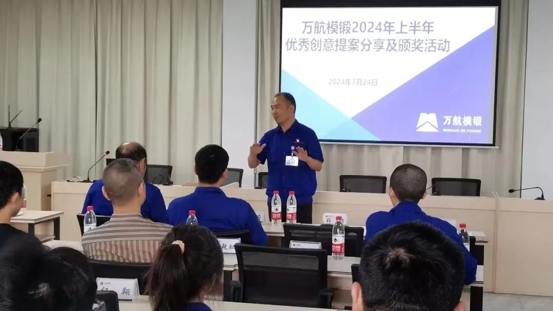 近日,萬航模鍛召開2024年上半年優(yōu)秀精益創(chuàng)意提案分享暨頒獎儀式。副總經(jīng)理張鵬出席會議并講話,副總經(jīng)理蔣佳君,總經(jīng)理助理肖石出席會議。