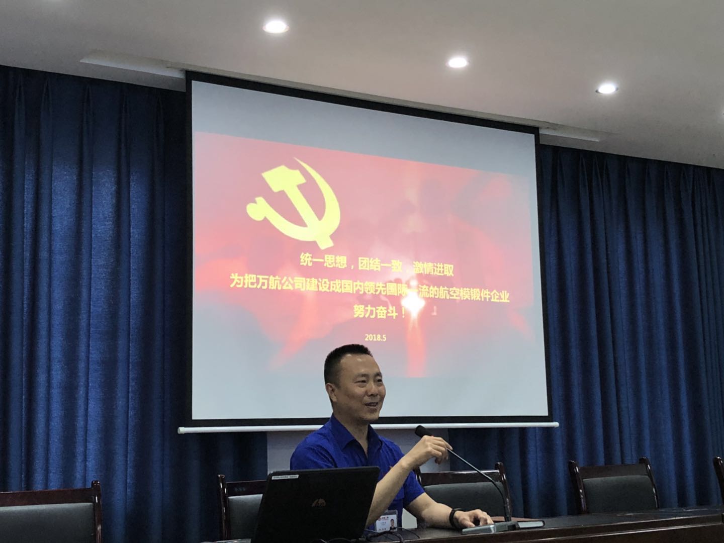 萬航公司總經(jīng)理、黨委副書記曾強詳細講授了題為《統(tǒng)一思想,團結(jié)一致,激情進取,為把萬航建設成為國內(nèi)領先國際一流的航空模鍛件企業(yè)努力奮斗》的專題黨課,號召與會人員認真貫徹黨的十九大精神和全國“兩會”精神,要不忘初心,牢記使命,圍繞公司生產(chǎn)經(jīng)營重點,務實地開展好各項工作。