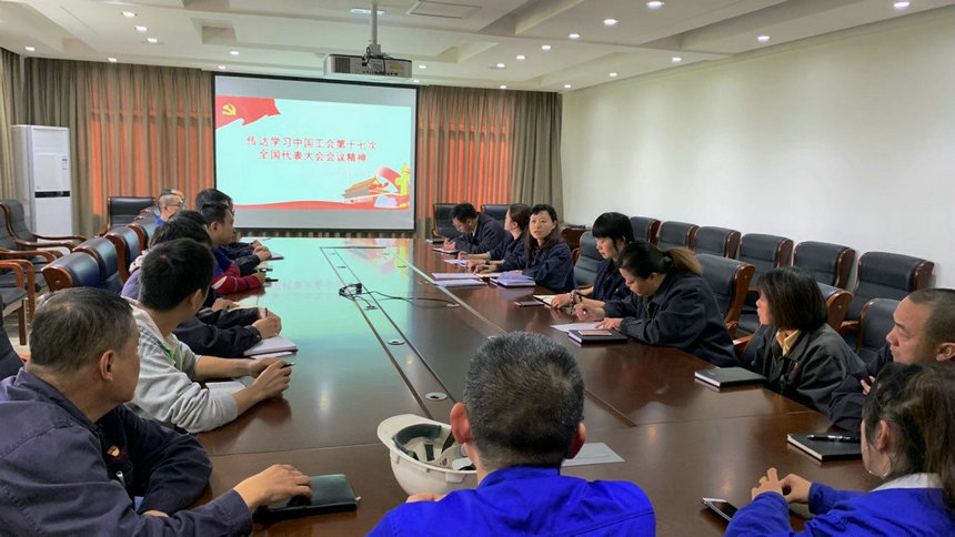 首先,彭主席為大家宣講了中國工會第十七次全國代大會的概況和王滬寧同志代表黨中央致詞主要精神、李克強總理經(jīng)濟形勢報告主要精神、王東明同志所作大會報告主要精神、李玉賦同志大會閉幕詞主要精神,并講述了自己做為代表參會的心情和感受。